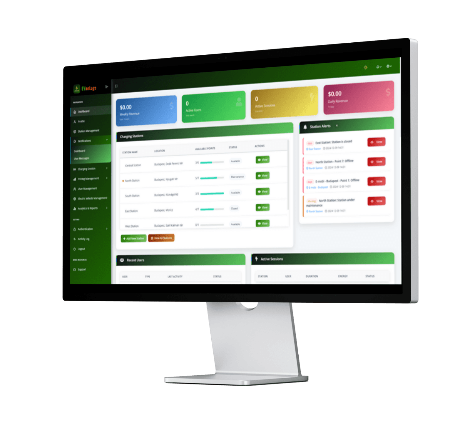 Maximize revenue and performance with EVantage’s management dashboard — track sessions, adjust pricing, and view detailed analytics, all in one place.